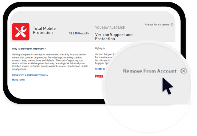 Scroll to “Total Mobile Protection” and click the Remove from Account button in the upper right corner (see the image below).